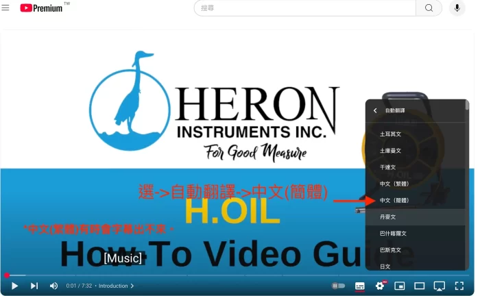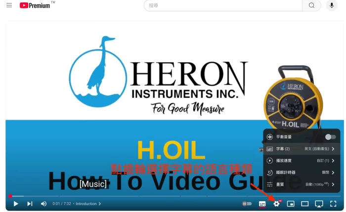 看GEOKON 或 HERON INSTRUMENTS YOUTUBE 教學影片時如何開啟中文字幕?