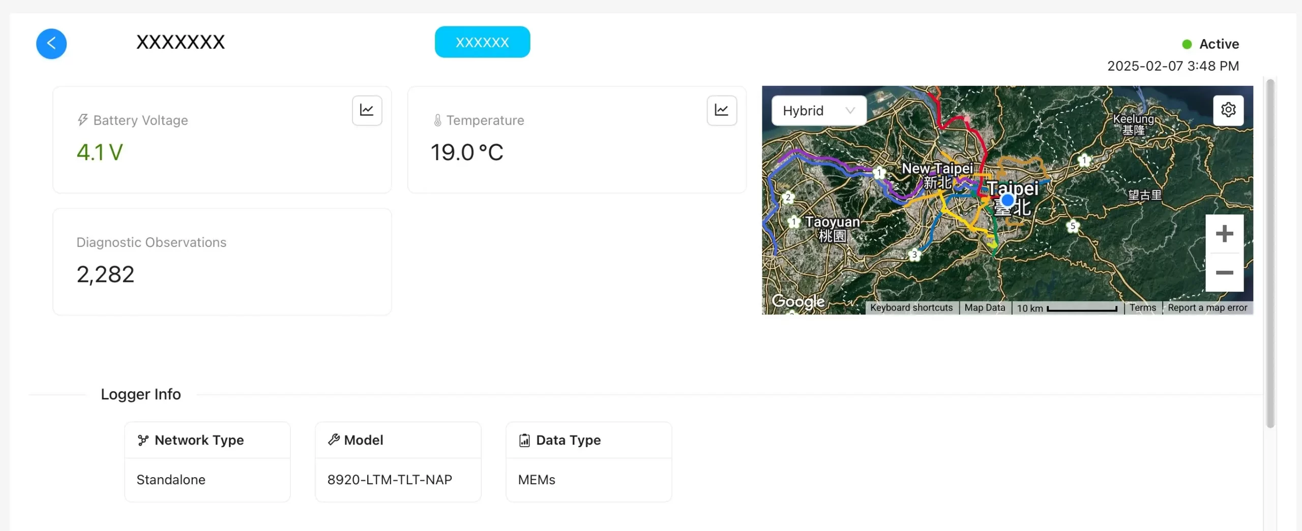 7. 點入任何一台裝置的序號, 便可進入該裝置看到更多該裝置的資訊譬如:該裝置的位置,電量, 溫度,最後一次下載資料日期等。