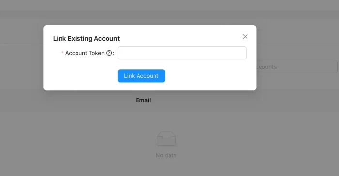 4. 點擊右上角”⊕ Link Existing Account”, 會跑出可輸入 “Account Token” 的欄位, 在欄位輸入由GEOKON 提供的Token 連線代幣。